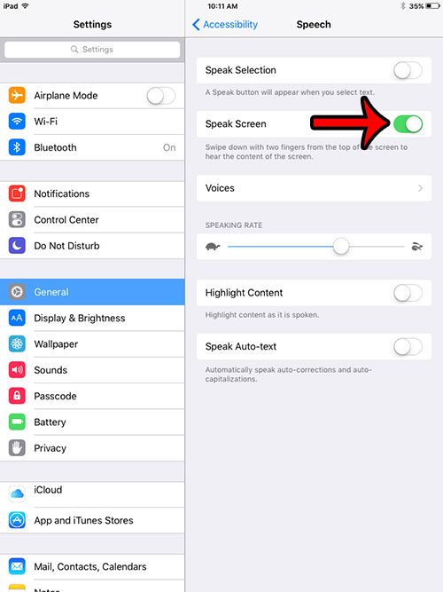 按照以下步骤启用此选项后,您将能够用两根手指从屏幕顶部向下滑动来收听屏幕上的内容。