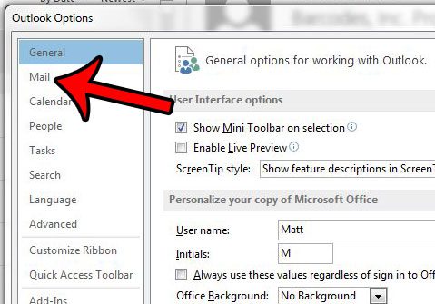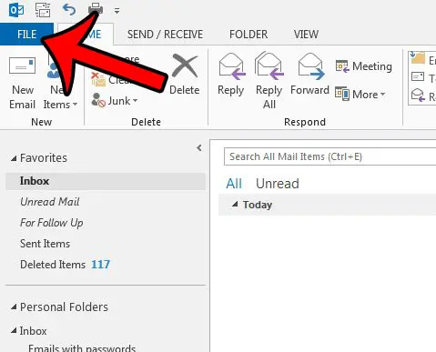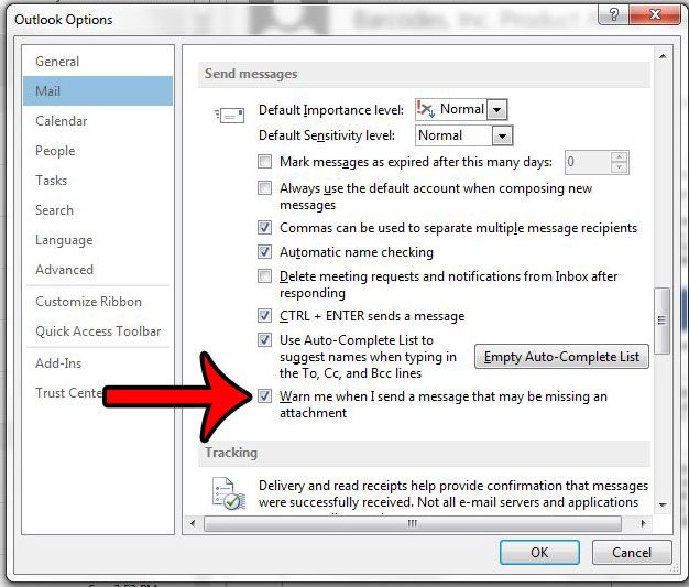 我们的指南在下面继续提供有关如何在 Outlook 2013 中启用附件提醒的其他信息,包括这些步骤的图片。