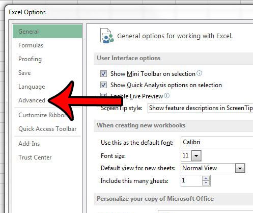 以下步骤假设您当前无法在 Excel 2013 中使用填充柄。如果您使用的是 Excel 2010,则启用填充柄的方法非常相似,但您可以单击此处阅读该 Excel 版本的说明。