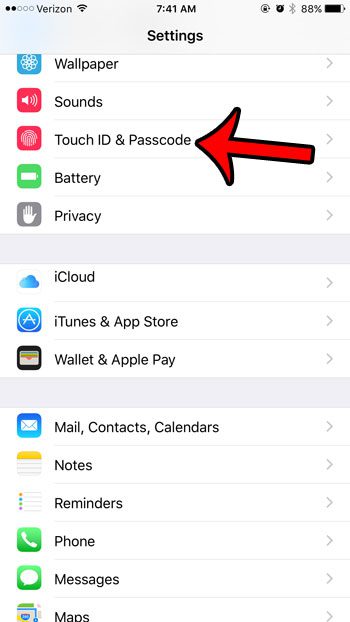 第 2 步:向下滚动并点击触摸 ID 和密码选项。