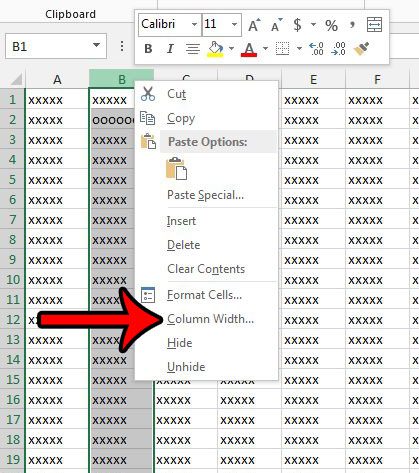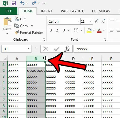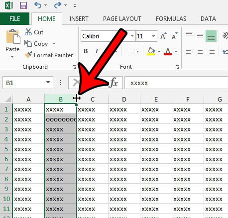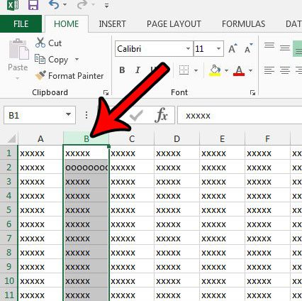 第 1 步:找到并单击包含要水平放大的单元格的列字母。对于这个例子,我关注的是细胞B2。