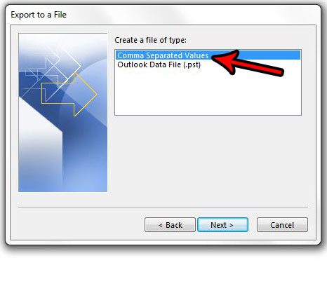 第 6 步:选择逗号分隔值,然后单击下一个。