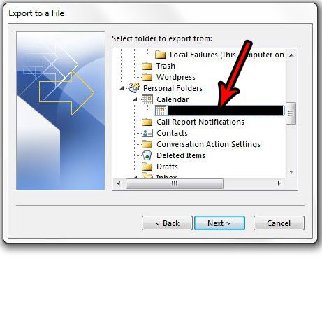 步骤 7:选择要导出的日历,然后单击下一个。请注意,您可能需要向下滚动一点才能找到日历。