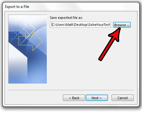 第 8 步:单击浏览按钮选择计算机上要保存导出的日历的位置,然后单击下一个按钮。