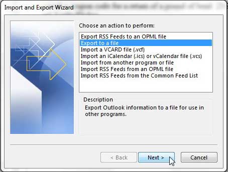 步骤 5:选择导出到文件选项,然后单击下一个按钮。