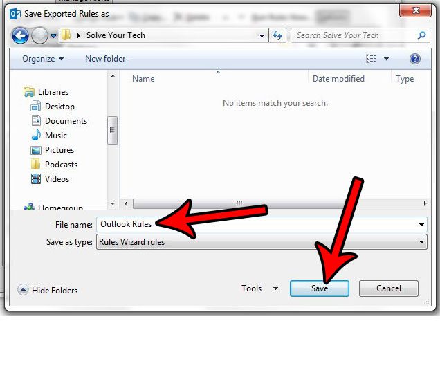 步骤6:选择导出的规则文件的位置,在“文件名”中输入文件名文件名字段,然后单击节省按钮。