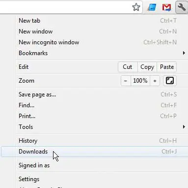 单击下载该菜单上的选项。请注意,您也可以直接按Ctrl+J在 Chrome 浏览器中使用键盘可以更快地打开此位置。