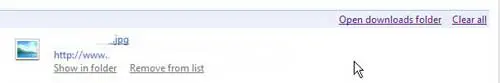 您会注意到,您在 Google Chrome 中下载的所有文件都按时间顺序列在该窗口的中心。如果您单击在文件夹中显示每个文件下的链接,将打开一个 Windows 资源管理器窗口,并突出显示所选文件。