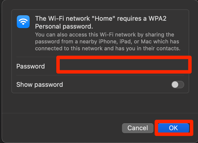 输入密码并点击好的重新连接到您的 Wi-Fi 网络。