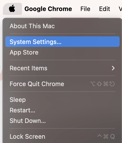 在苹果菜单, 选择系统设置。