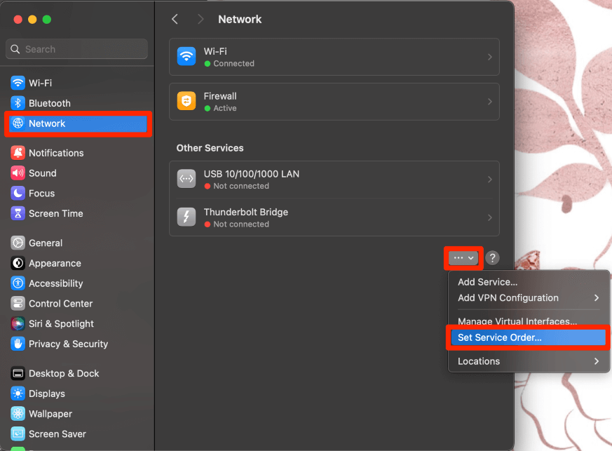 如果这听起来可能是你,那么调整您的服务订单将会对你很有帮助!这将告诉您的 Mac 优先选择您的 Wi-Fi 连接而不是其他连接(或您希望它优先选择的任何连接)。