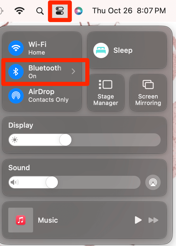 在主菜单中,单击控制中心图标。然后,选择蓝牙。