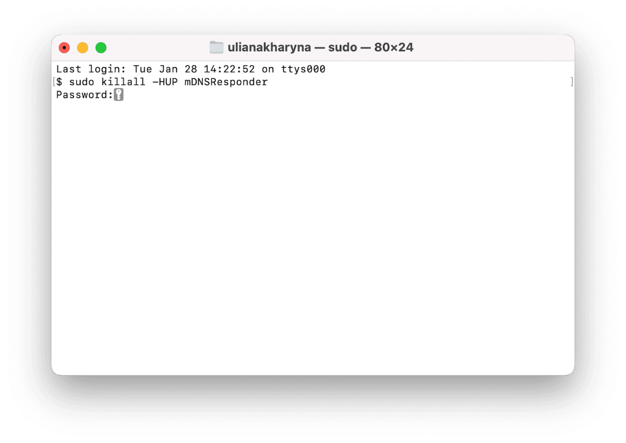 sudo killall -HUP mDNSResponder - 按 Return 键并退出终端。