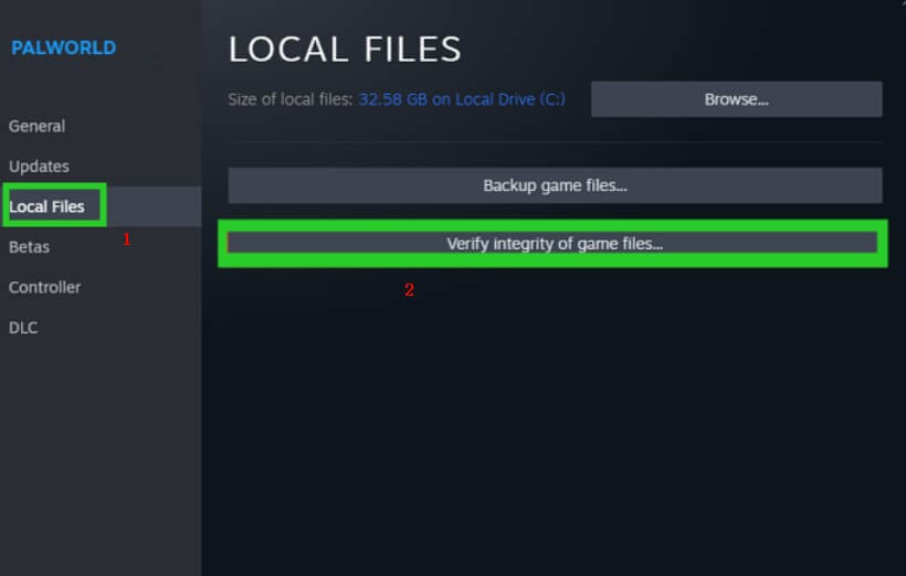 步骤 4。点击“验证游戏文件的完整性”。