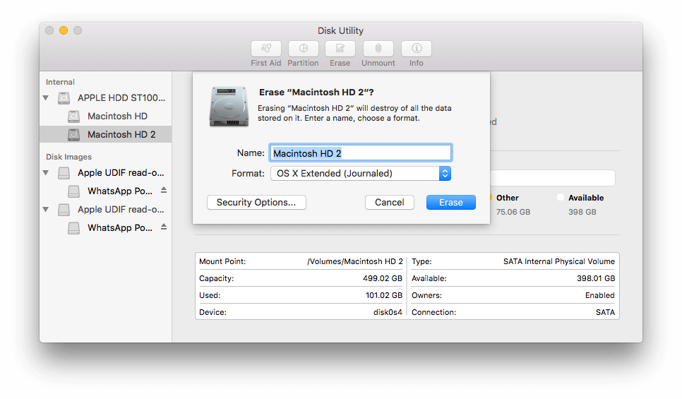 - 为磁盘命名并选择 MacOS Journaled Extended (Journaled) 作为格式。