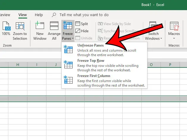 如果您不小心冻结了错误的行或列,或者收到包含不需要的冻结实体的电子表格,则可以返回到看法选项卡,单击冻结窗格按钮,然后选择解冻窗格选项。