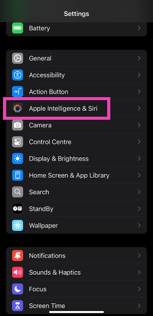 第4步:返回到设置并选择Apple 智能和 Siri。