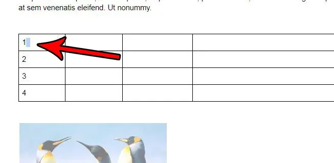 第 2 步:单击表中某个单元格内的某处。