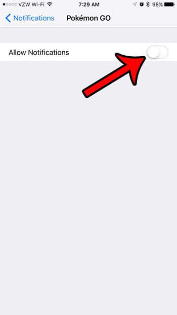 第四步:点击右侧的按钮允许通知将它们全部关闭。关闭所有通知后,此菜单上的其余选项应该消失。下图中 Pokemon Go 通知已关闭。