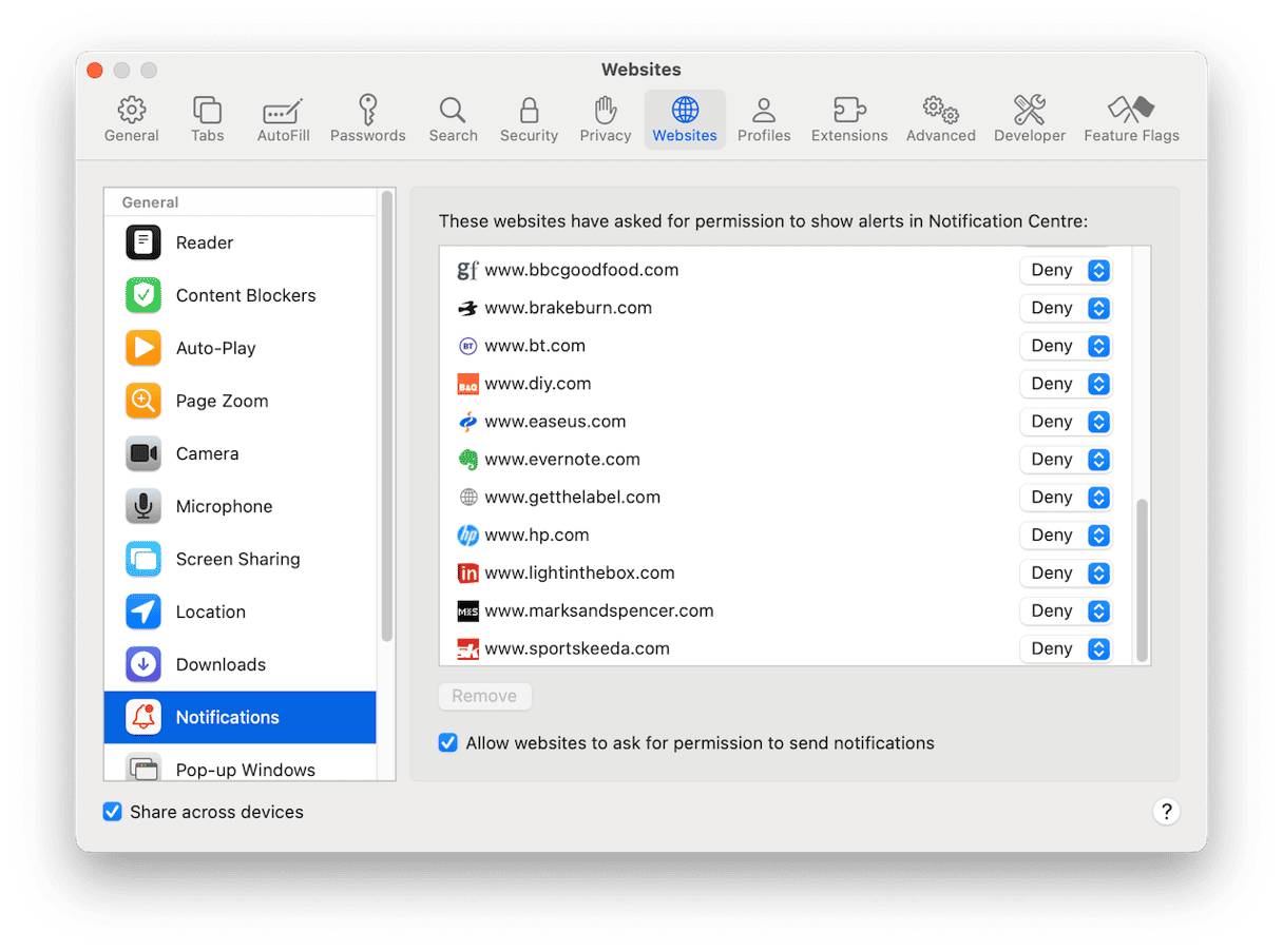 首先要做的就是禁用向您发送弹出窗口的网站的通知。这是在三个不同的浏览器中阻止Mac上的McAfee弹出窗口的方法。