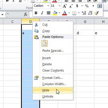 请注意,您可以同时隐藏多个连续的列,方法是单击最左侧的列标题,然后拖动鼠标选择要隐藏的其余列。如果要隐藏的多列不连续,则可以按住控制键键并单击要隐藏的每个单独的列,然后右键单击选定的列之一并单击隐藏。