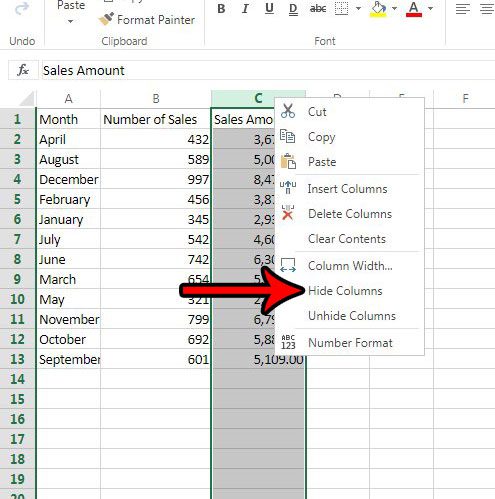 步骤 4:右键单击选定的列之一,然后选择隐藏列选项。