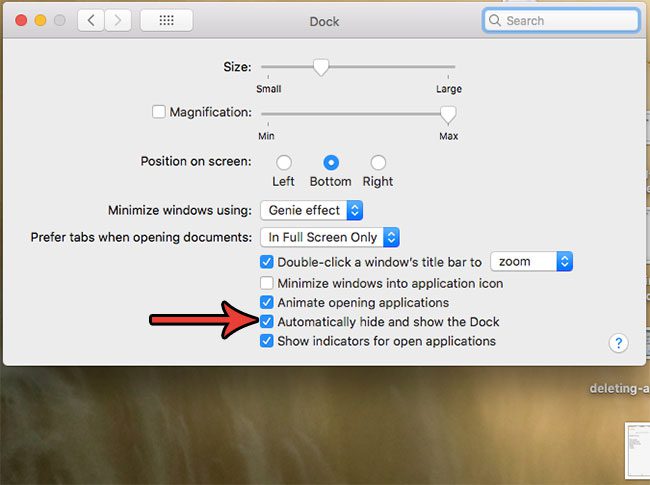 现在应该隐藏码头。您可以通过将鼠标光标拖动到屏幕底部来使其显示。