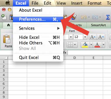 第 2 步:点击Excel屏幕顶部,然后单击偏好设置。