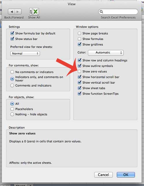 如果您将来需要停止隐藏另一个电子表格的零值,您可以再次执行这些步骤。