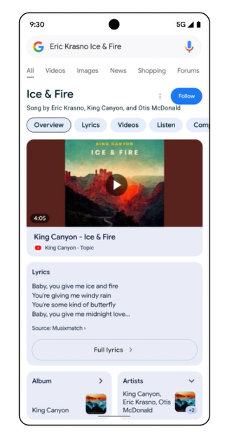 第4步:您的手机将听到歌曲几秒钟,然后打开 Google 搜索结果查找歌曲标题。