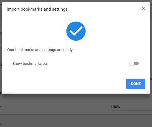 导入完成后,您将看到以下对话框窗口。如果您愿意,您也可以选择在窗口顶部显示书签栏。