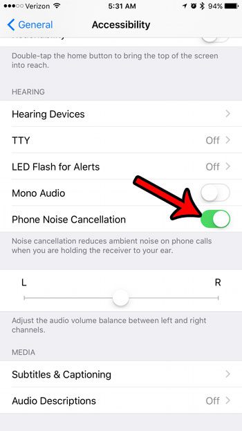 第 4 步:向下滚动到听力部分,然后启用电话降噪选项。