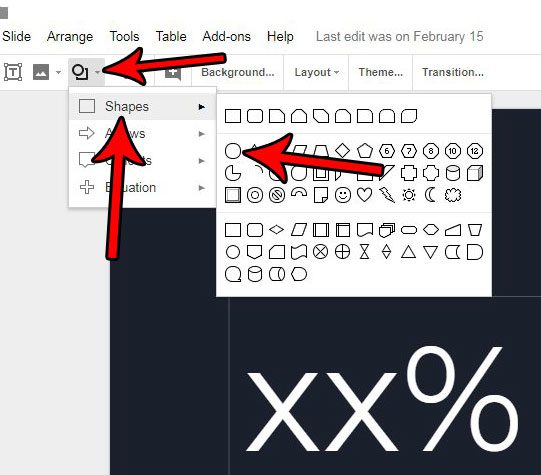 第 3 步:单击形状工具栏中的按钮,选择形状选项,然后单击圆圈。