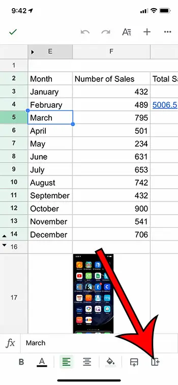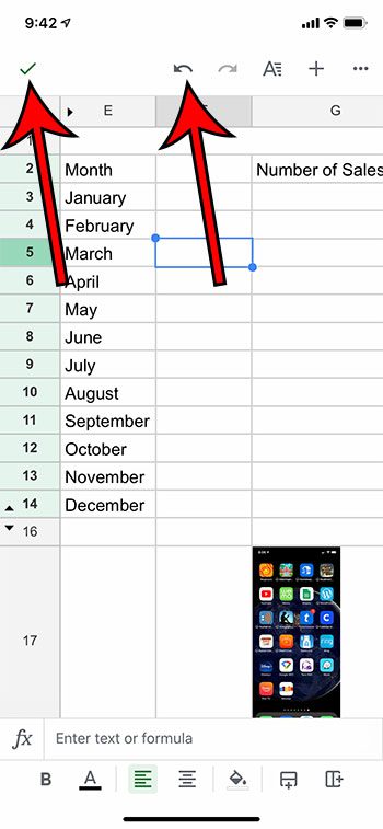 完成后,您可以点击屏幕左上角的绿色复选标记。屏幕顶部还有一个向左的箭头,如果您想撤消列插入,可以触摸该箭头。