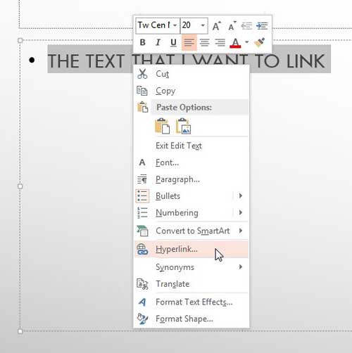 您还可以通过选择文本,然后右键单击它并选择超级链接选项。