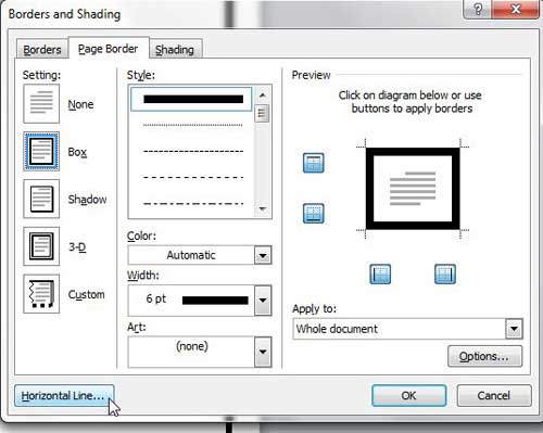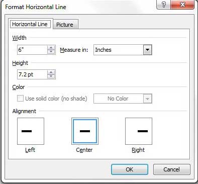 - 右键单击装饰线,然后单击设置水平线格式进行任何更改的选项。