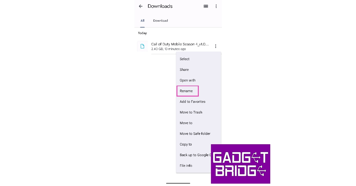 步骤3:找到您刚刚下载的 XAPK。点击省略号并选择“重命名”。