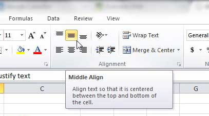 单元格大小的默认设置可能会让您很难注意到垂直对齐方式的任何差异。但是,您可以通过提高行的高度来使垂直调整更加明显。