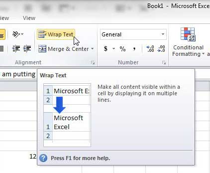 如果要使用 Excel 2010 中的对齐选项,可以通过单击文字换行按钮在结盟的部分家丝带。