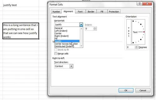 您还可以选择垂直或水平对齐单元格,方法是右键单击单元格,然后单击设置单元格格式,然后单击下面的下拉菜单水平的或者垂直的,并选择证明合法选项。