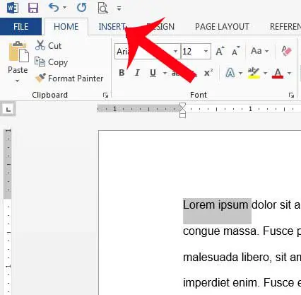 步骤 4:返回 Microsoft Word 2013,然后单击插入窗口顶部的选项卡。