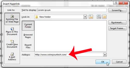 步骤 6:单击窗口底部的地址字段,然后按Ctrl + V粘贴您之前复制的网址,然后单击好的按钮位于窗口底部。