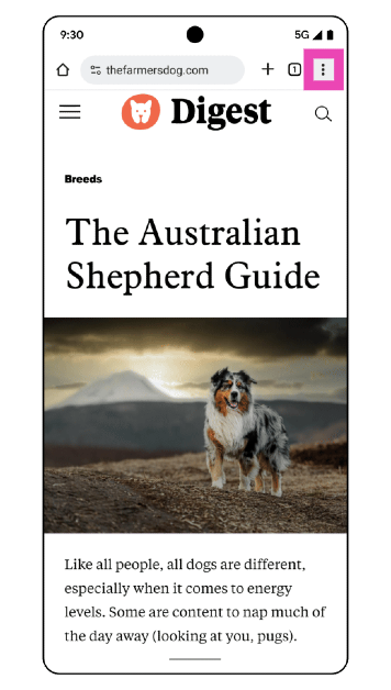 步骤一: 发射在 Android 智能手机上安装 Google Chrome 并打开一个网页。
