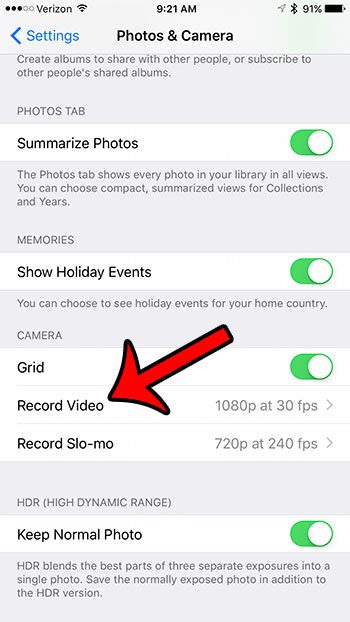 第 3 步:向下滚动并点击录制视频按钮在相机菜单部分。