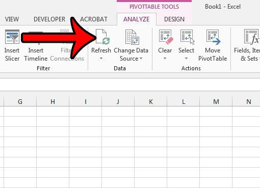 您可以在添加更多礼物时更新数据透视表,方法是单击刷新按钮上的分析选项卡下数据透视表工具。请注意,您需要单击数据透视表内的某个位置才能创建数据透视表工具选项卡出现。