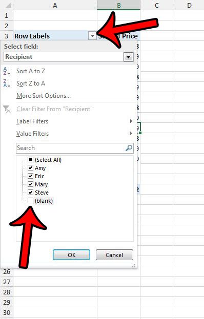 例如,如果您想从表格中删除“空白”选项,则可以单击右侧的箭头行标签,取消选中空白左侧的框,然后单击好的按钮。