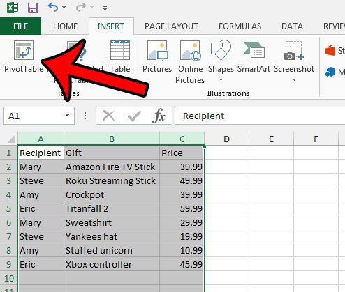 以下步骤的结果将是我们使用数据透视表组织的三列电子表格。