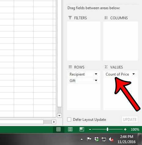 第 10 步:单击价格选项中的行数右列的部分,然后将其拖到价值观部分。
