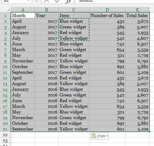 为了本指南的目的,我们假设您的电子表格中已包含数据并且数据具有标题。如果您没有标题(电子表格顶部的一行,用于标识列中的数据),那么您可能需要添加标题行以使此过程更容易一些。