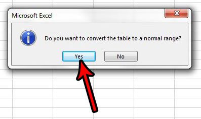 第 13 步:单击是的按钮以确认您要将表格转换回正常范围。